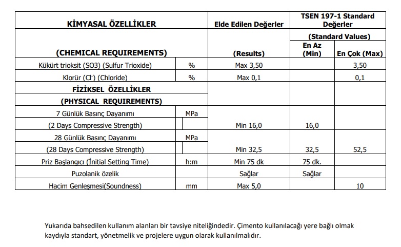CEM IV /B (P-W) 32,5 N Belirli miktarlarda Portland çimentosu klinkeri, doğal puzolan olan tras, kalkersi uçucu kül ve alçı taşı içeren çimentodur.